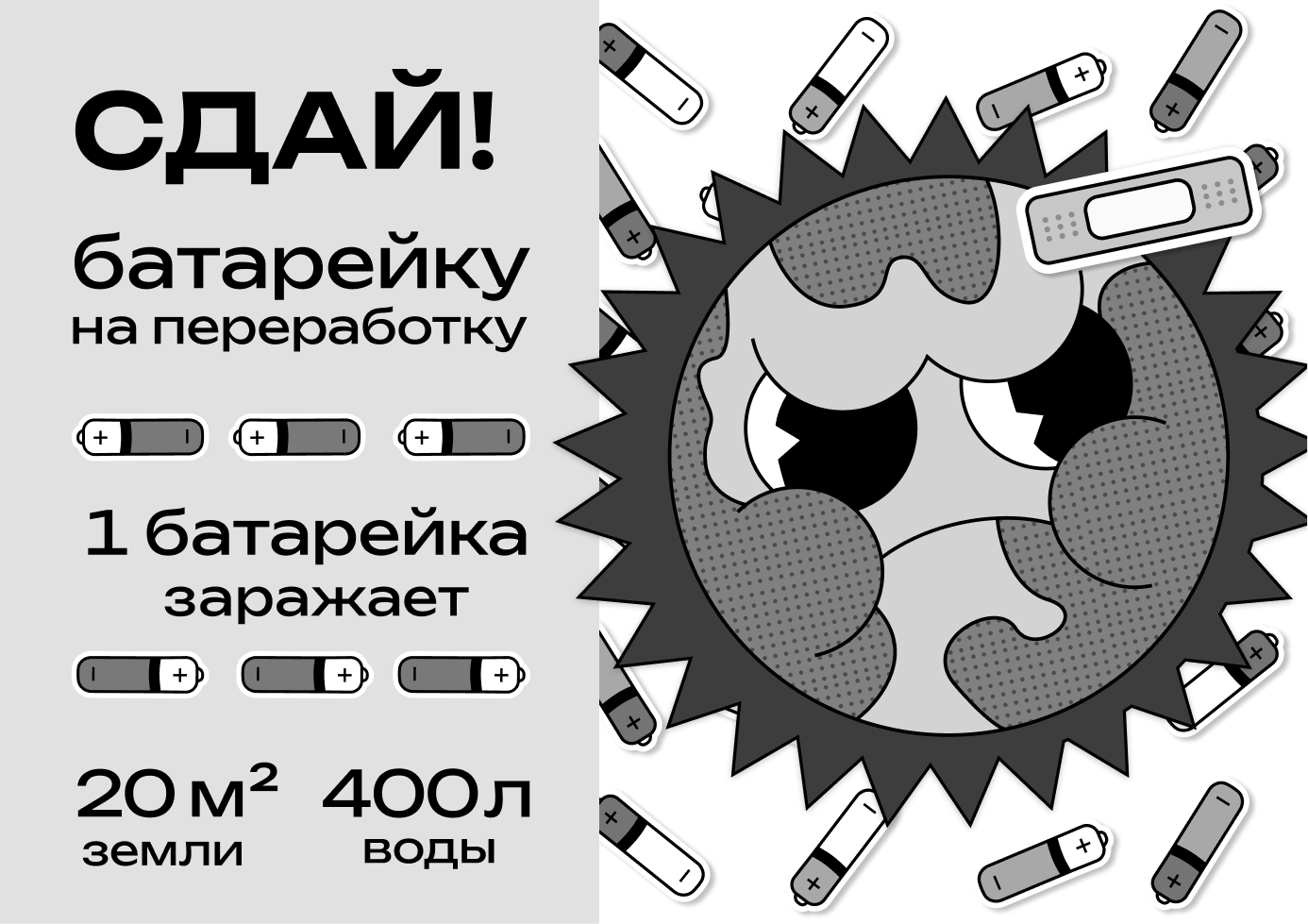 Одна батарейка может загрязнить 16-20 кв.м. земли и 400 литров воды!