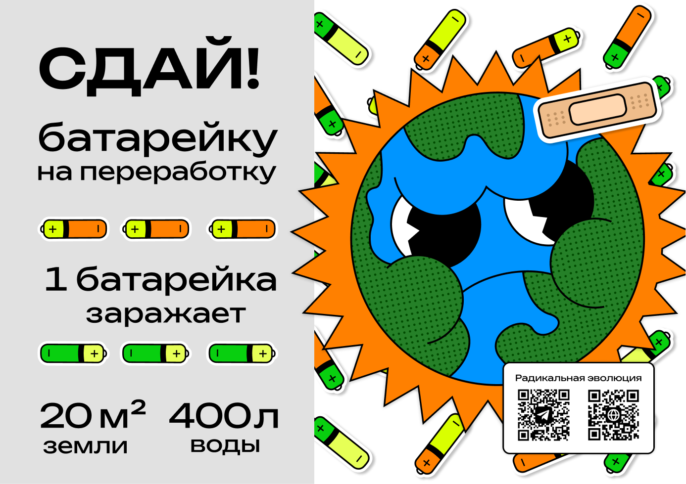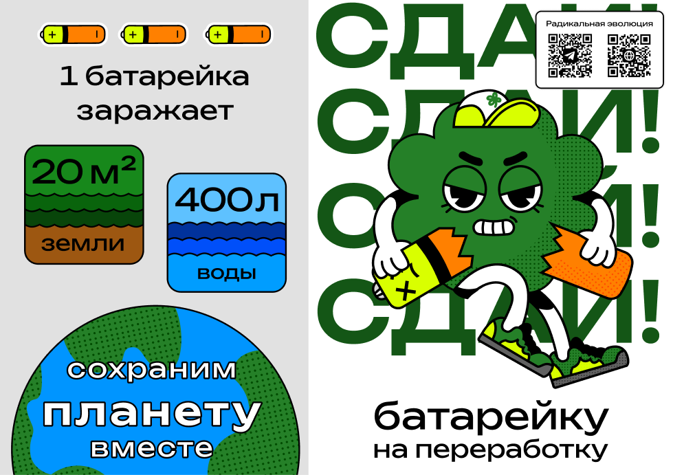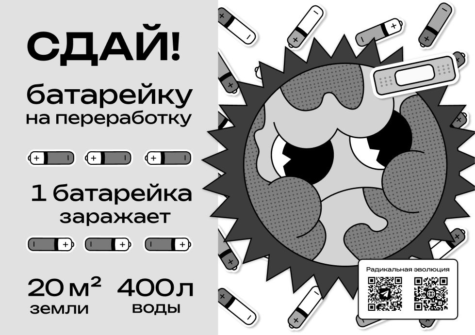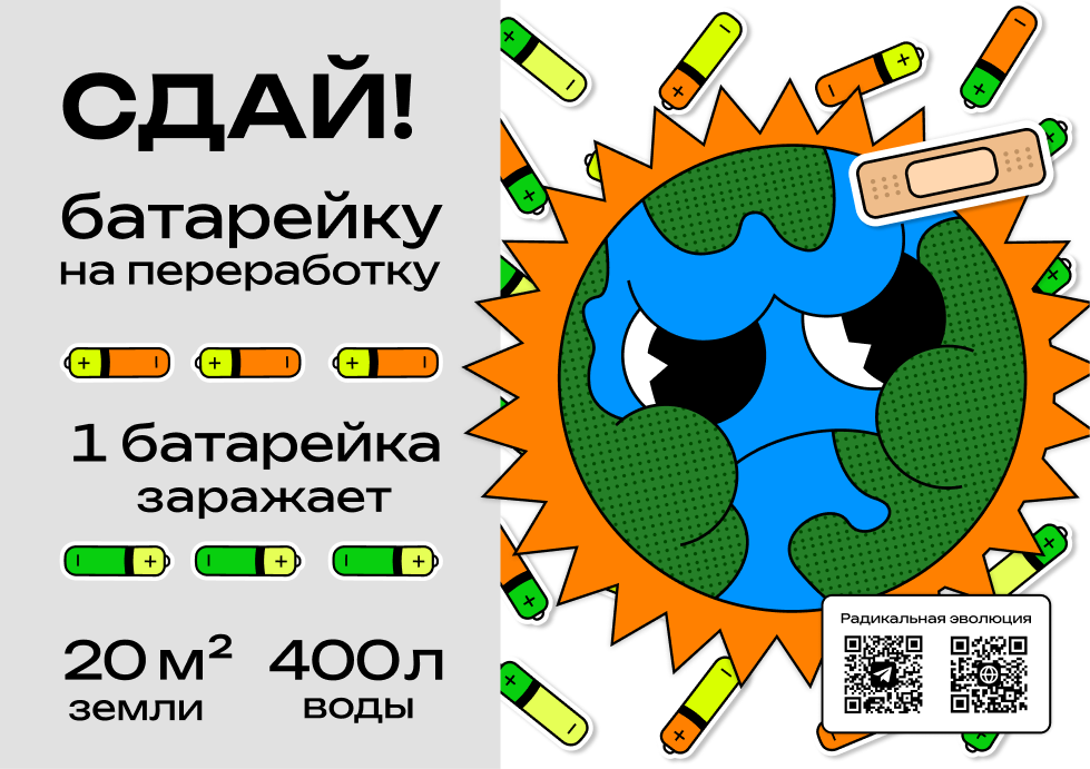 Одна батарейка может загрязнить 16-20 кв.м. земли и 400 литров воды!